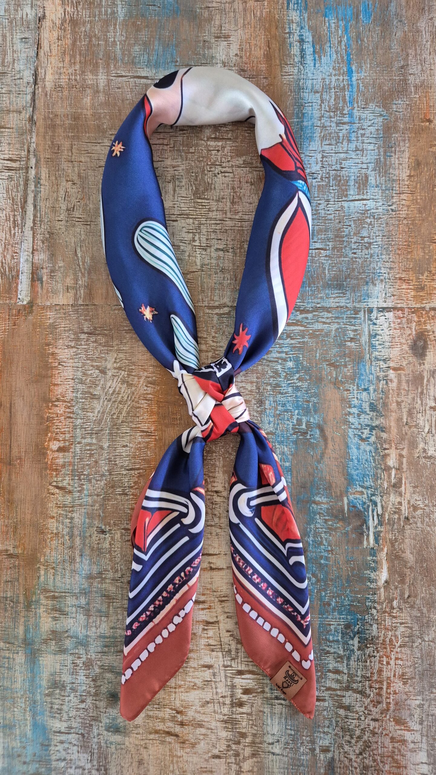 Lenço estampa exclusiva Maoki Wild Rags, confeccionado em Seda Gloss, caimento impecável e um toque acetinado que garante conforto.